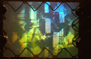 These holographic scenes were constructed by blending sampled imagery with computer processes, forming a montage of actual and virtual geometry. The stereographic reconstruction of these digital image sequences allows for a mnemonic landscape to be experienced as you move through the multiple perspectives.